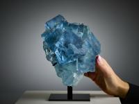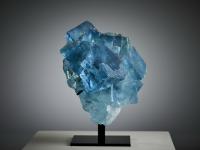 The striking contrast between the vivid blue fluorite and the snow-white quartz creates a perfectly balanced and elegant composition — a museum-quality piece that embodies the finest aesthetics and mineral perfection of the La Viesca Mine.