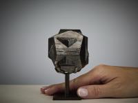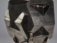 A fascinating and sculptural specimen from Colombia, where limonite has replaced the original pyrite crystal while perfectly preserving its sharp geometry. The intergrown cubic forms are so harmoniously unified that they create the appearance of a single, sculptural sphere.