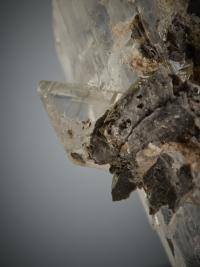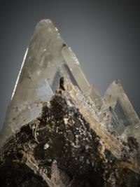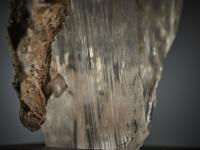 The selenite is so clear and transparent that it acts like a natural lens — magnifying and revealing the texture of the matrix behind it, creating a fascinating visual effect.