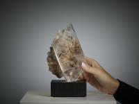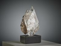 An impressive large crystal of selenite from the Mica Mine in Chihuahua, Mexico, beautifully transparent and resting on its natural matrix. The surface has a soft, glassy lustre that enhances the purity and clarity of the mineral.