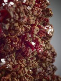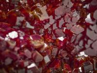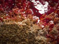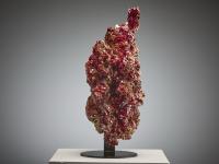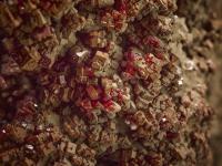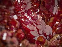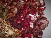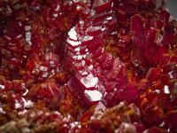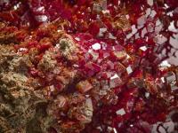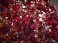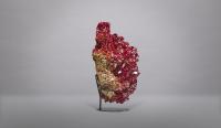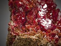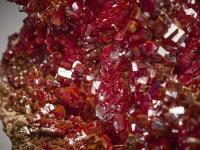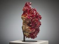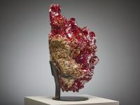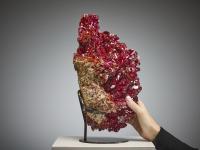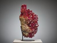 An exceptional large specimen of vanadinite from Morocco, covered entirely with brilliant, deep red crystals of varying sizes. The crystals are densely packed together, forming a continuous, sculptural surface with remarkable intensity and texture.