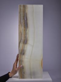 Beautiful lamp, carved from a block of translucent Mexican banded onyx.