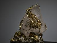 This elegant specimen from China showcases stacked cubic crystals of siderite, arranged in a sculptural, geometric formation. The composition is beautifully enhanced by a delicate layer of golden pyrite that rests across the upper surfaces, adding shimmer and contrast to the warm, earthy hues of the siderite.