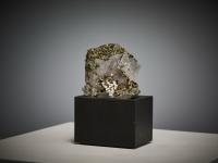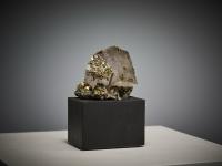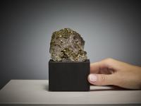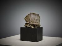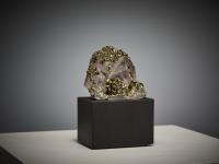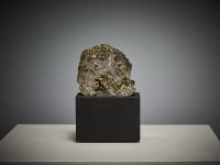The interplay of metallic brilliance and soft mineral tones gives the piece both depth and sophistication, creating a captivating balance between natural elegance and architectural form.