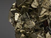 A striking specimen of pyrite with hematite from Peru, featuring sharp triangular crystals with a fascinating mix of textures. Some surfaces are smooth and reflective, while others are more matte and naturally porous, creating a beautiful contrast between shine and roughness.