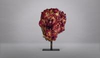 This piece stands out for its rich saturation and visual impact, combining fiery red tones with geometric perfection.